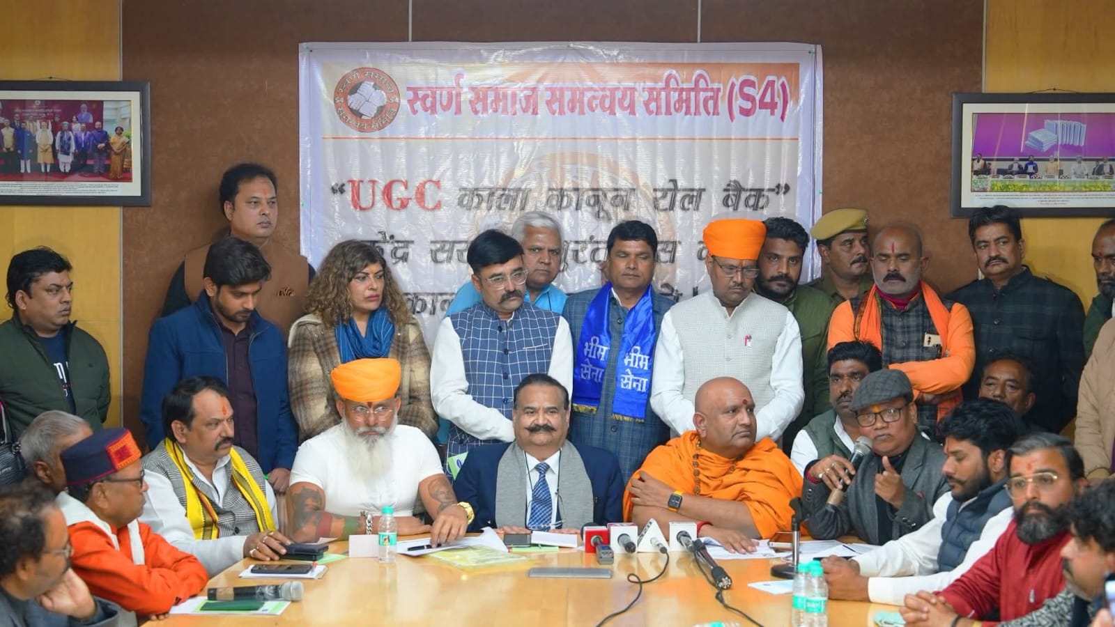 नई दिल्ली। यूजीसी एक्ट को लेकर जारी विवाद के बीच “सवर्ण समाज समन्वय समिति “ से जुड़े 40 से ज़्यादा संगठनों ने सरकार को चेतावनी दी कि अगर इस क़ानून को वापस नहीं लिया गया तो वो 8 मार्च( 2026) को रामलीला मैदान में “यूजीसी रोल बैक आंदोलन “ करेंगे । इसकी शुरुआत कल आहूत देशव्यापी बंद के साथ होगी । इस बात की जानकारी आज पंडित मदन मोहन मालवीय स्मृति भवन में आयोजित प्रेस कॉन्फ़्रेंस में समित के प्रमुख स्वामी आनंद स्वरूप महाराज ने दी । इस अवसर पर करणी सेना के राज सिंह शेखावत, अजीत सिंह, हिंदू महासभा के विजय कौशिक, कायस्थ महासभा के अनूप श्रीवास्तव, ब्रिगेडियर अनिल श्रीवास्तव, हाई कोर्ट के पूर्व जस्टिस सुधीर सक्सेना, सुप्रीम कोर्ट के सीनियर एडवोकेट डीपी श्रीवास्तव, अग्रवाल महासभा के अनिल अग्रवाल, भीम सेना के नेशनल प्रेसिडेंट श्रीधर साल्वे, जनसंघ के कुलदीप पांडे, योगी किशोर तिवारी, छगन सिंह राठौर आरएसपी के पंकज धवरैया समेत बड़ी संख्या में इस एक्ट का विरोध करने वाले संगठनों के प्रतिनिधि मौजूद थे ।
