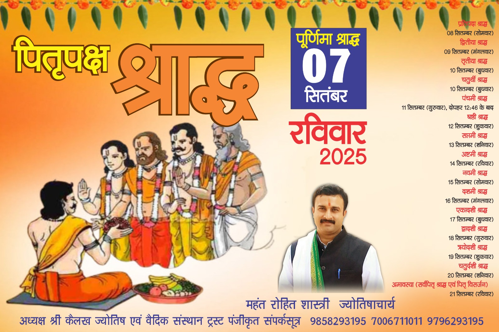 पितृपक्ष 2025 : कब करें श्राद्ध, तर्पण और दान? जानें सभी तिथियां और सम्पूर्ण जानकारी – ज्योतिषाचार्य महंत रोहित शास्त्री