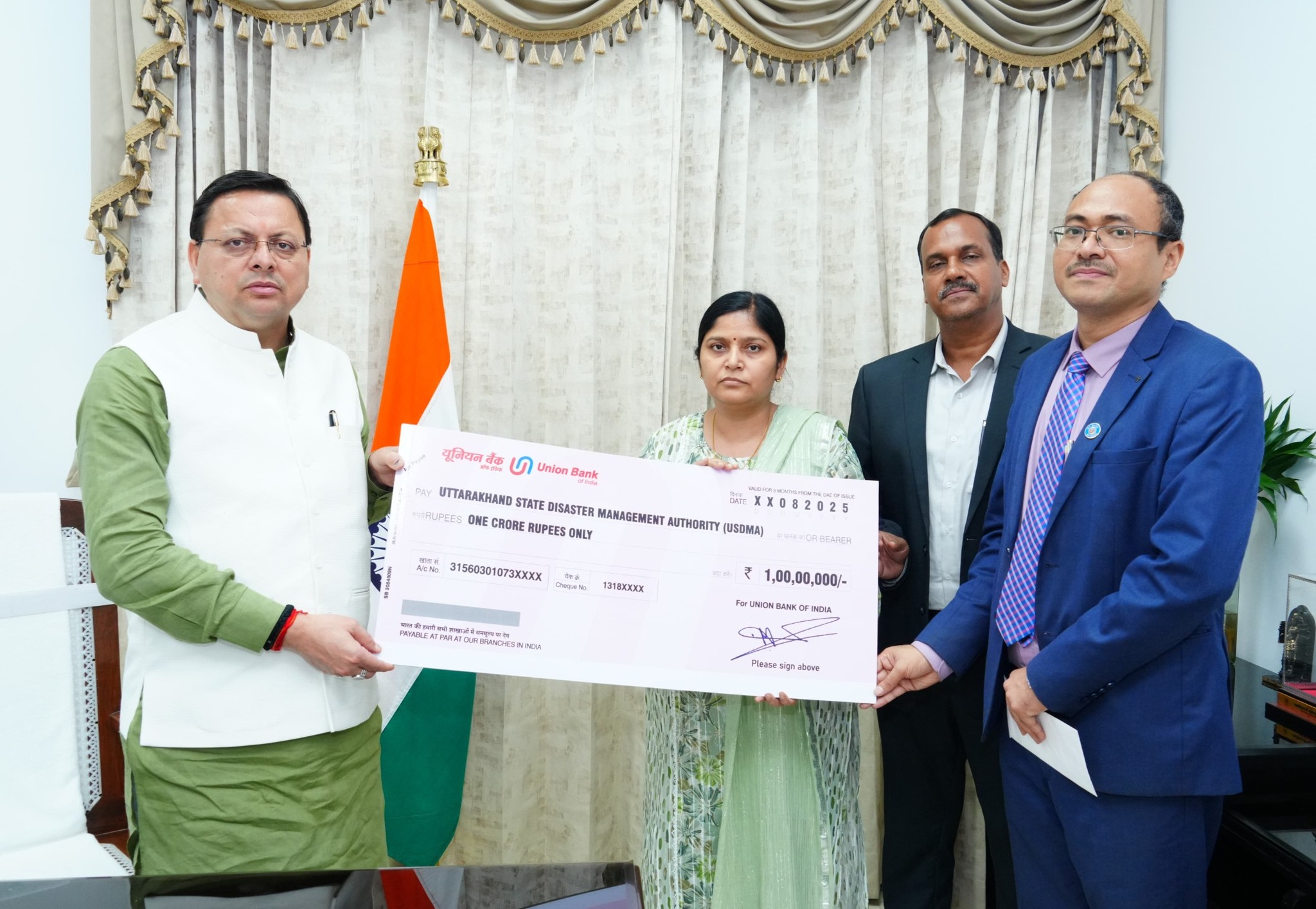 मुख्यमंत्री श्री पुष्कर सिंह धामी से बुधवार को मुख्यमंत्री आवास में यूनियन बैंक ऑफ़ इंडिया के प्रतिनिधिमंडल ने भेंट की। इस दौरान यूनियन बैंक ऑफ़ इंडिया द्वारा उत्तरकाशी जिले के धराली एवं हर्षिल क्षेत्र में आई आपदा के राहत कार्यों के लिए ₹ 1 करोड़ की धनराशि का योगदान दिया गया।