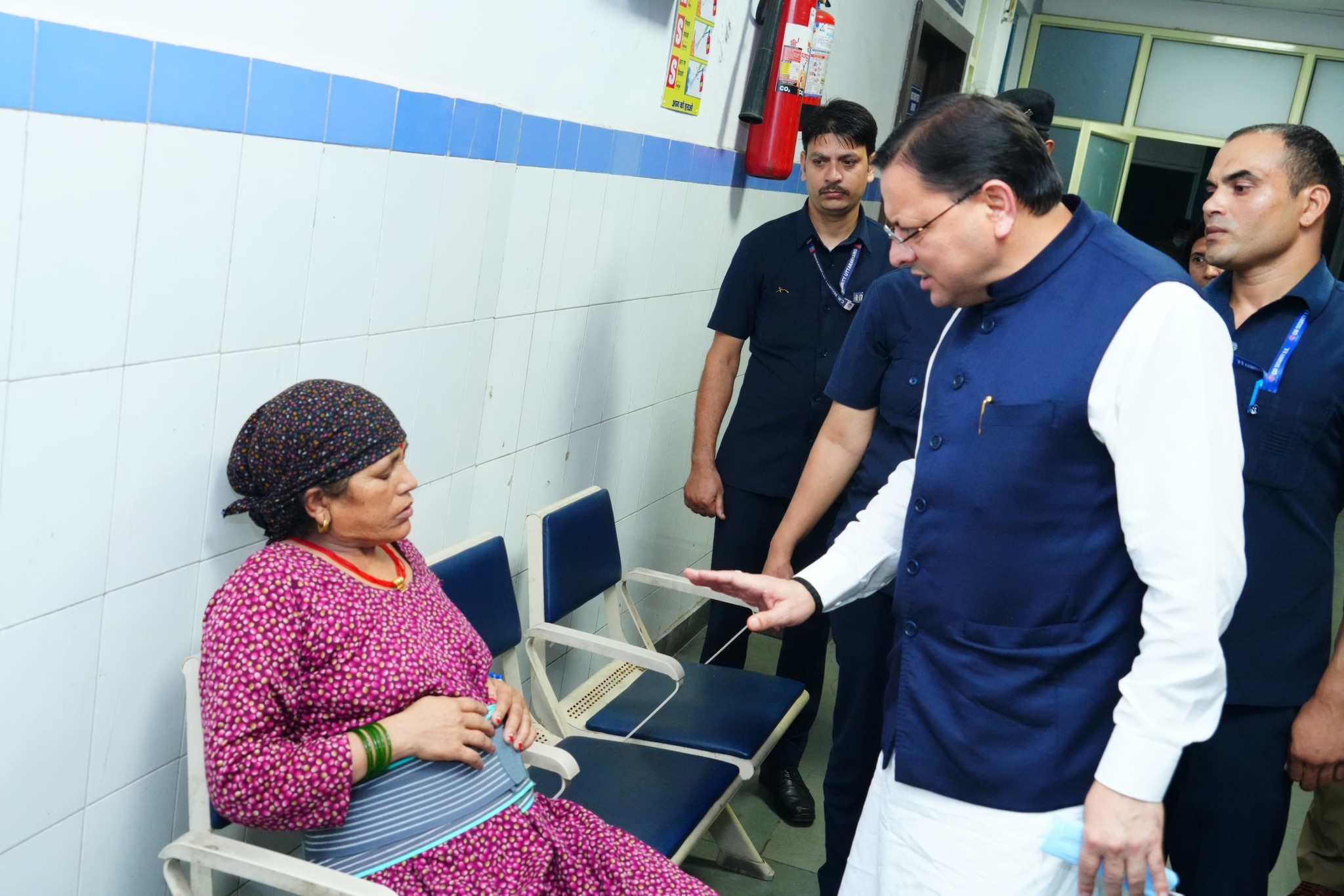 अस्पताल परिसर में स्थापित अटल आयुष्मान उत्तराखंड योजना हेल्प डेस्क का भी जायजा लेते हुए मुख्यमंत्री ने वहां तैनात कर्मचारियों से योजना की कार्यप्रणाली, लाभार्थियों को दी जा रही सहायता, कार्ड बनाने की प्रक्रिया, मरीजों के क्लेम की स्थिति तथा जनसामान्य को प्रदान की जा रही सुविधा संबंधी जानकारी प्राप्त की। लाभार्थियों से भी उन्होंने बात की।
