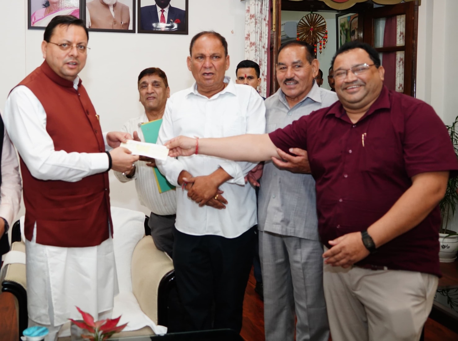 मुख्यमंत्री श्री पुष्कर सिंह धामी से आज मुख्यमंत्री आवास में उत्तराखण्ड राज्य उत्पादन एवं कृषि विपणन बोर्ड के अध्यक्ष डॉ. अनिल डब्बू ने शिष्टाचार भेंट की। इस अवसर पर डॉ. अनिल डब्बू ने राज्य में विभिन्न आपदाओं से प्रभावित लोगों की सहायता हेतु मुख्यमंत्री राहत कोष में ₹1 करोड़ की सहयोग राशि भेंट की।